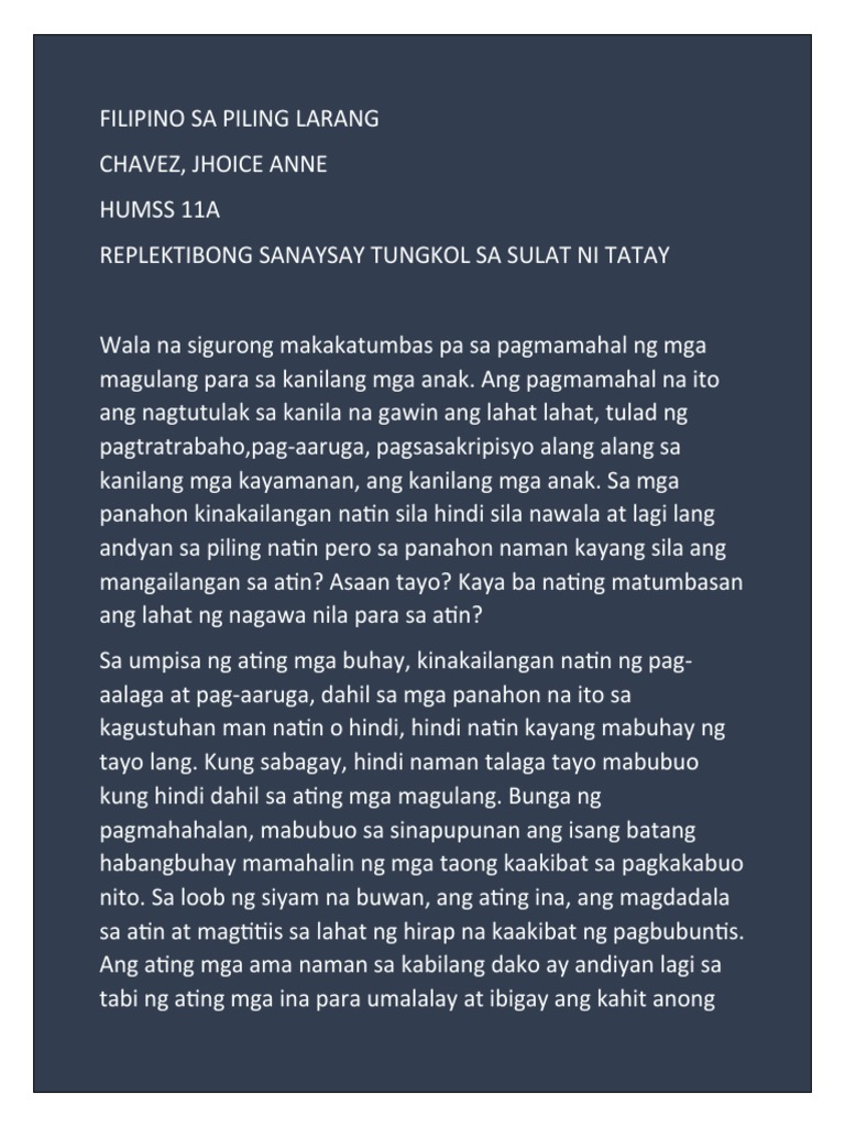 Replektibo Tungkol Sa Sulat Ni Tatay Pdf